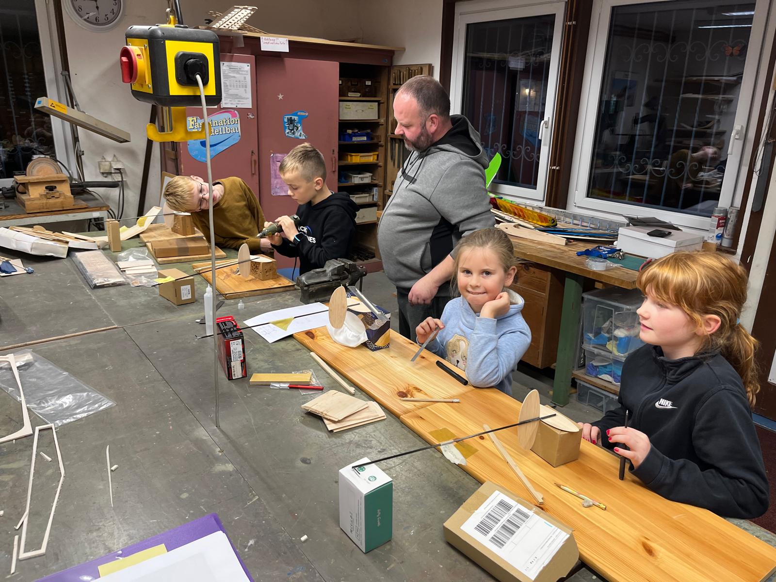 nun ist wieder Bauen angesagt. Unser Trainer Michael Kuschke in der Einweisung mit 4 Kindern, die je ein Schleuderflieger namens Ariane bauen. Diese sollen bis zum Frühjahr fertig sein und dann geht’s raus auf den Modellflugplatz. Wie man freudiger Weise erkennen kann, hat das Hobby auch weibliches Interesse gefunden.